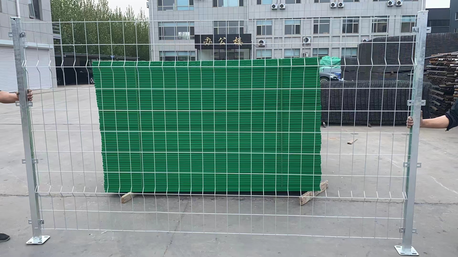 四、現(xiàn)貨鍍鋅護(hù)欄網(wǎng)的樣式:雙邊絲護(hù)欄網(wǎng)+兩道三角折彎。也可以叫做三角折彎護(hù)欄網(wǎng)。